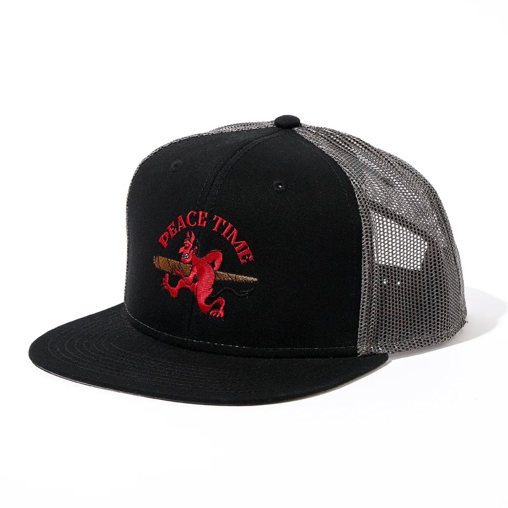 フロントに刺繍を施したメッシュキャップ。後部アジャスターでサイズ調整が可能です。