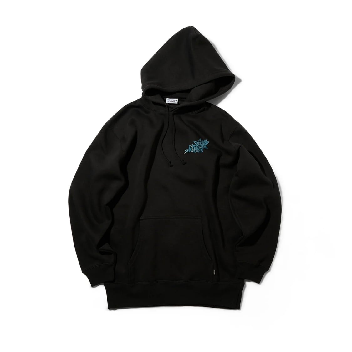 10.0オンスの裏起毛T/C生地を使用したグラフィックフードスウェット。