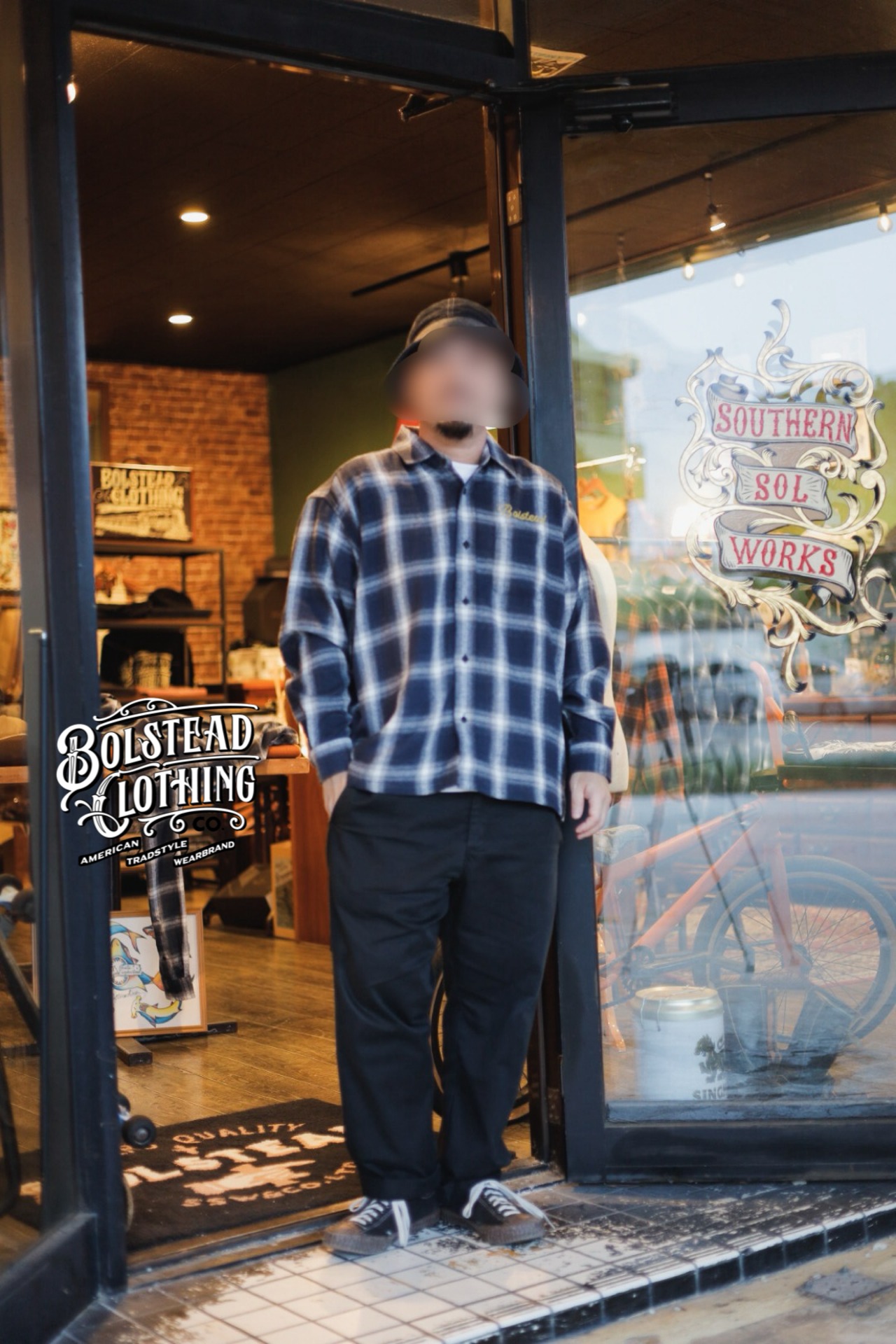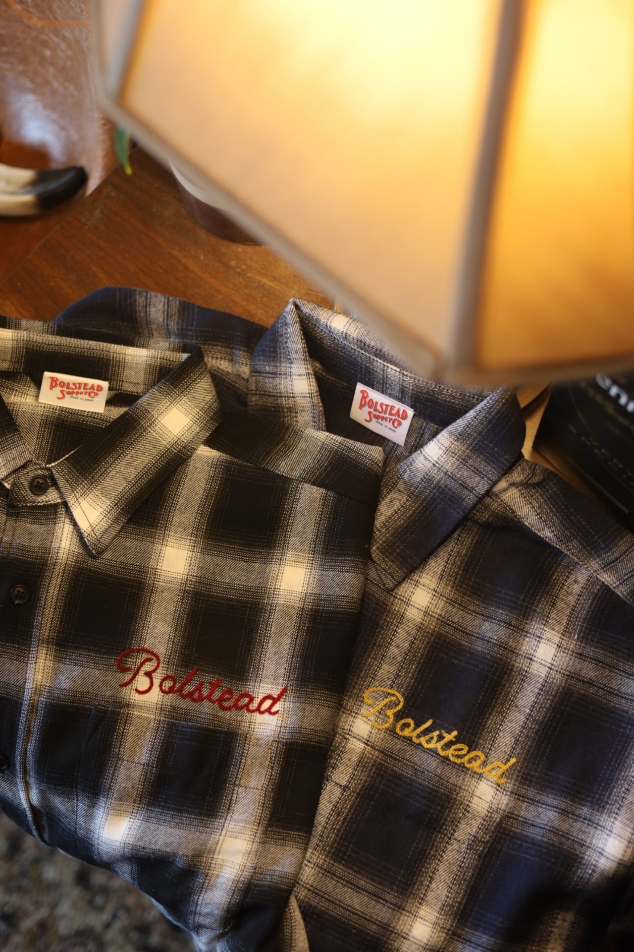 左胸BOLSTEADのチェーンステッチを刺繍にて配備。