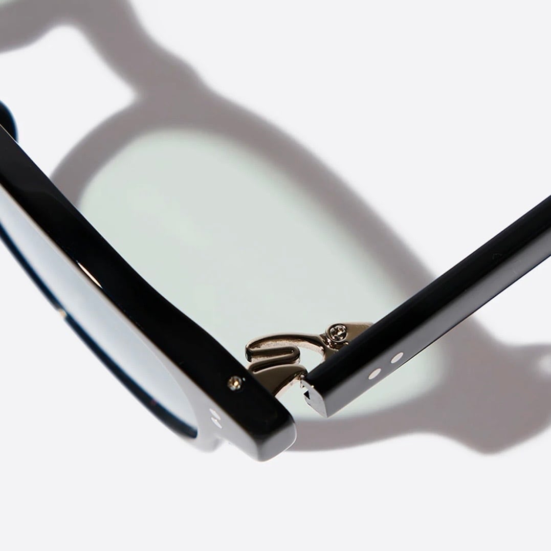 鮮やかなカラーが特徴のサングラス。 最大の特徴はフロントとテンプルをつなぐ開閉する部分に、サングラスをかけた時に頭が痛くならないよう拘りを見せたアイテムです。 フロント 14.5cm サイド 15.5cm CONTENT _ ACETATE 100%