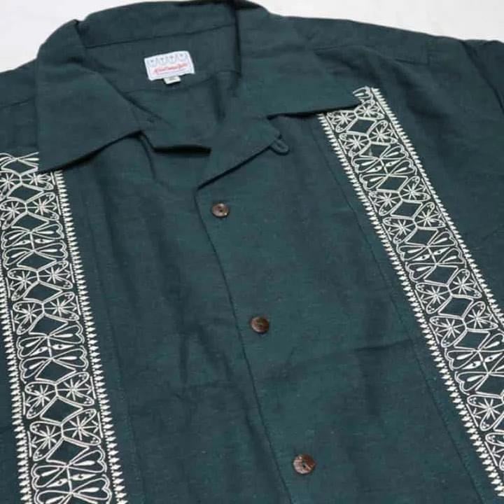 "FACECARD" GUAYABERA SHORT SLEVE SHIRTS -GREEN