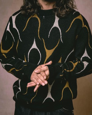 AT-DIRTYより FLAMES KNITがリリース。 好評のファイアーパターンを配したニット。 オリジナルのフレームスをジャガードで表現。 WOOL 50% ACRYL 50% MADE IN JAPAN 〈SIZE〉 S 着丈 64㎝ 身幅 52㎝ 肩幅 41㎝ 袖丈 59㎝ M 着丈 66㎝ 身幅 54㎝ 肩幅 43㎝ 袖丈 60㎝ L 着丈 68㎝ 身幅 56㎝ 肩幅 45㎝ 袖丈 61㎝ XL 着丈 70㎝ 身幅 58㎝ 肩幅 47㎝ 袖丈 62㎝ ※多少の誤差はご了承ください。